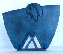 1.- El logo del Tricentenario: aparece un 300 que en parte sobrepasa los límites del círculo expresando que el carisma lasaliano no acaba con esta celebración sino que sigue abierta al futuro y a una nueva concepción de la familia lasaliana formada por todos los que quieren compartir y profundizar el carisma lasaliano. Aparece además el 300 superando en parte los límites de la forma. A la vez, el límite superior de la pieza es una línea ascendente tratando de reforzar la sensación de movimiento, de dinamismo.